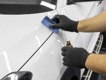 Ceramic coating is a protective layer for vehicle paint that uses nanotechnology to provide durable, long-lasting protection. Unlike wax, it forms a semi-permanent bond with the paint, guarding against UV, bird droppings, acid rain, and scratches. The hydrophobic surface repels water, making cleaning easier and preventing water spots. Offering a glossy finish, it reduces maintenance and keeps your car’s paint looking new for years, unlike traditional products that require frequent reapplication.
